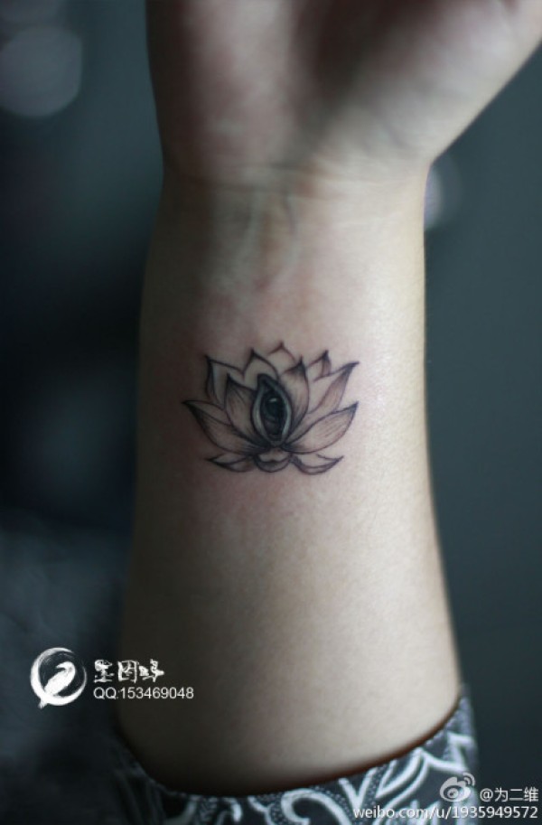 女生手腕小巧潮流的黑灰莲花纹身图案_女生纹身图案大全_纹身图吧