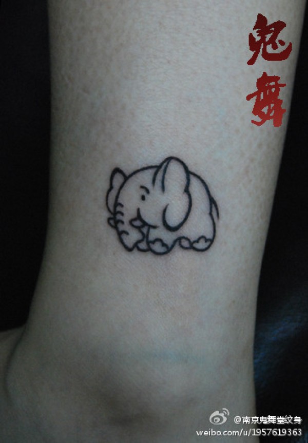 女生腿部可爱小巧的小象纹身图案_女生纹身图案大全_纹身图吧