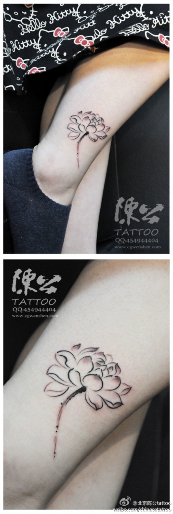 女生腿部潮流唯美的黑白莲花纹身图案_女生纹身图案大全_纹身图吧