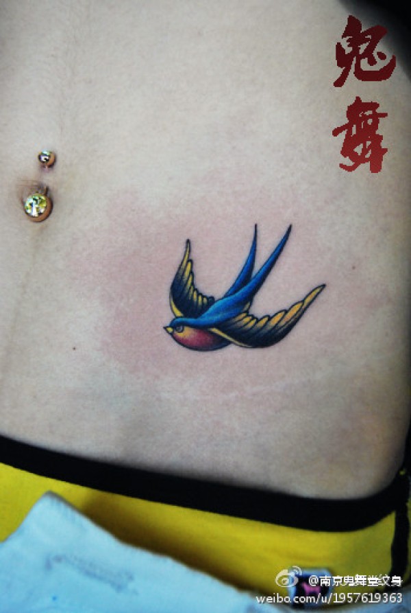 美女腹部时尚小巧的小燕子纹身图案_女生纹身图案大全_纹身图吧