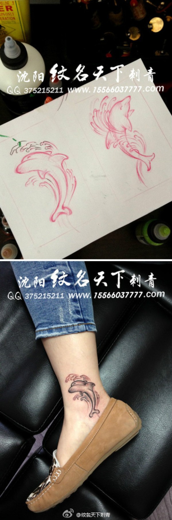 女生脚踝处潮流可爱的小海豚纹身图案_女生纹身图案大全_纹身图吧