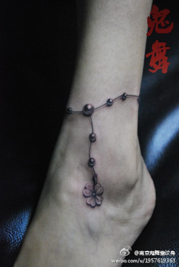 女生脚腕时尚小巧的四叶草脚链纹身图案_女生纹身图案大全_纹身图吧