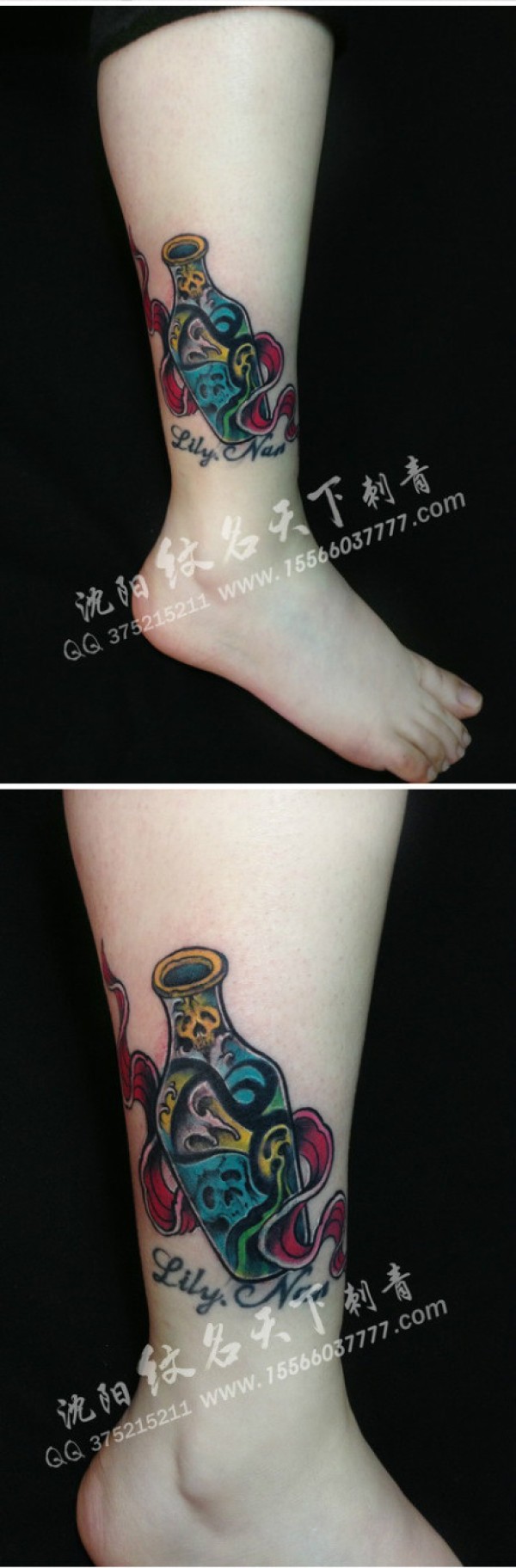 女生腿部时尚另类的水瓶纹身图案_女生纹身图案大全_纹身图吧