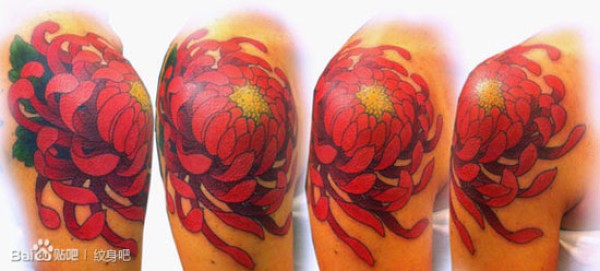 女生肩膀处唯美时尚的菊花纹身图案_女生纹身图案大全_纹身图吧