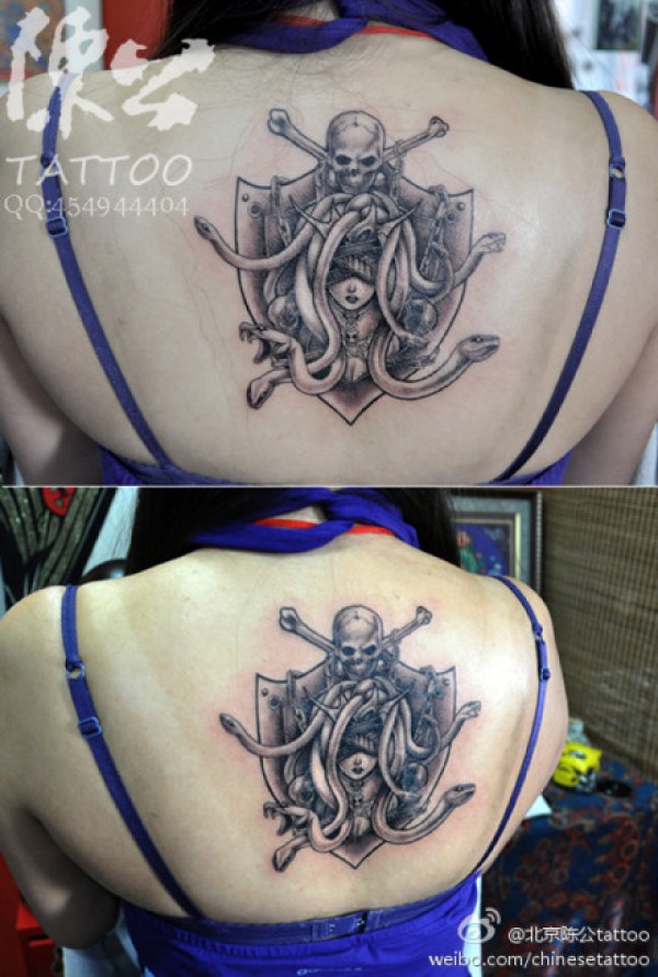 女生后背很酷经典的美杜莎纹身图案_女生纹身图案大全_纹身图吧