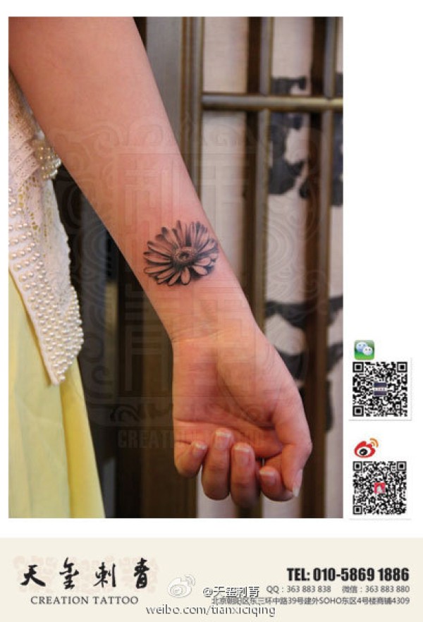 女生手腕小巧时尚的邹菊纹身图案_女生纹身图案大全_纹身图吧