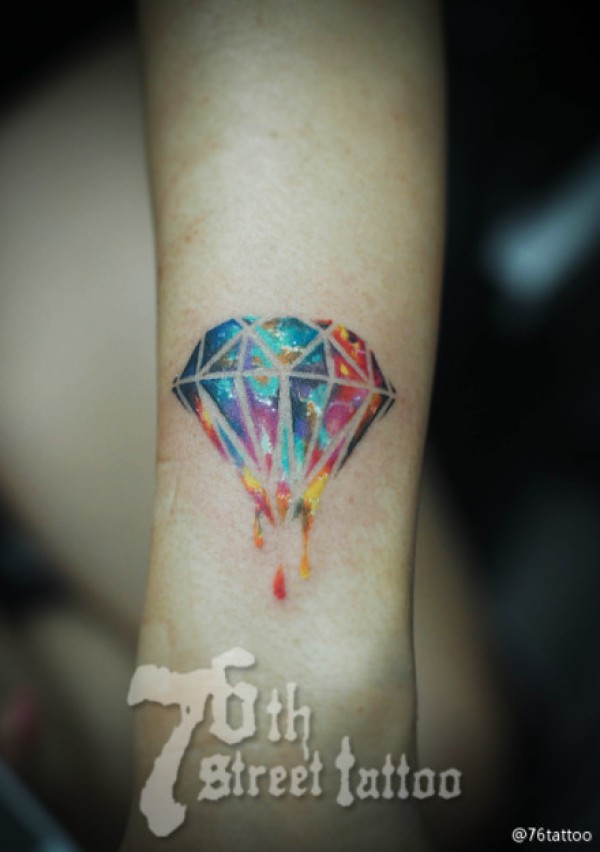 女生手臂精美的彩色星空钻石纹身图案_女生纹身图案大全_纹身图吧