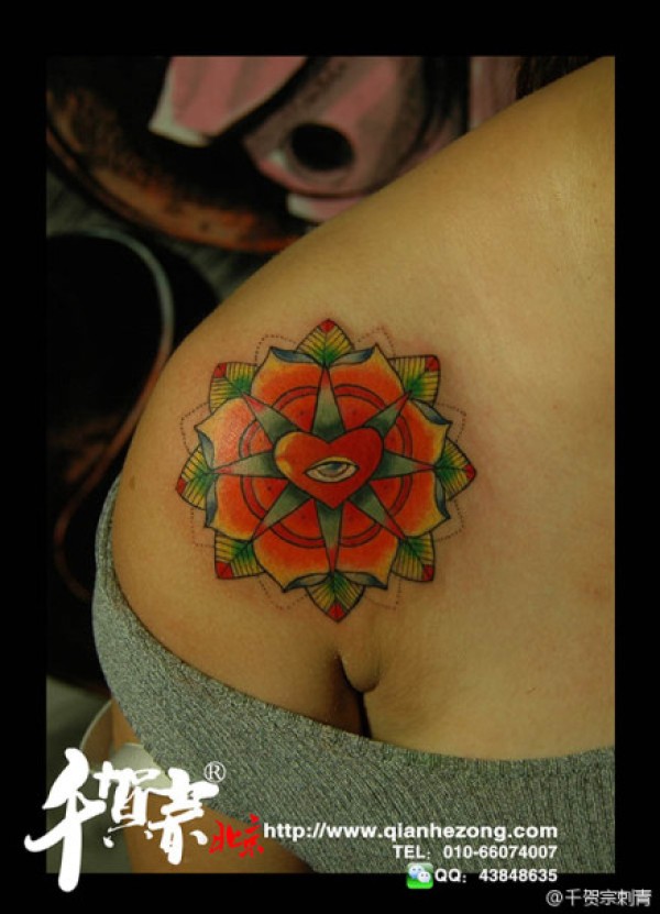 女生肩膀处时尚唯美的花卉纹身图案_女生纹身图案大全_纹身图吧