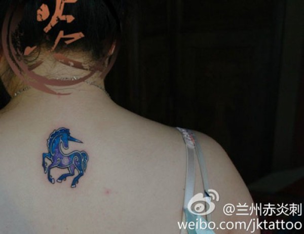 女生后背时尚潮流的星空独角兽纹身图案_女生纹身图案大全_纹身图吧