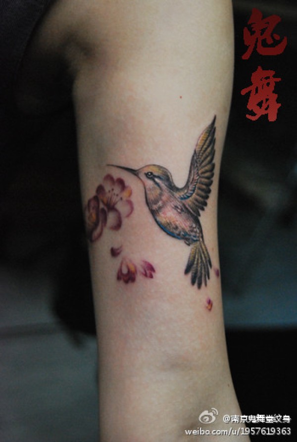 女生手臂时尚潮流的彩色小蜂鸟纹身图案_女生纹身图案大全_纹身图吧