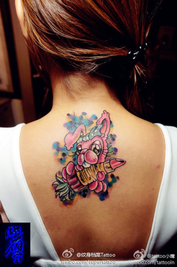 女生后背可爱的小兔子与口红纹身图案_女生纹身图案大全_纹身图吧