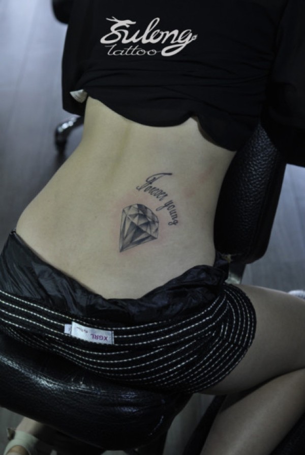 女生腰部时尚潮流的黑灰钻石纹身图案_女生纹身图案大全_纹身图吧