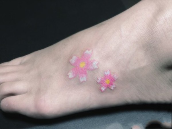 女生脚背小巧精美的粉色樱花纹身图案_女生纹身图案大全_纹身图吧