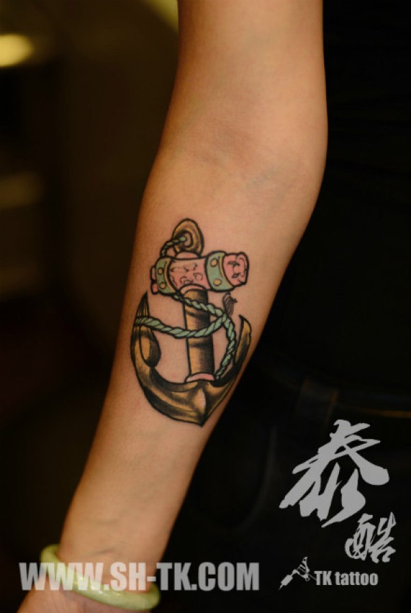 女生手臂精美潮流的船锚纹身图案_女生纹身图案大全_纹身图吧