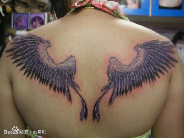 女生后背唯美潮流的彩色翅膀纹身图案_女生纹身图案大全_纹身图吧