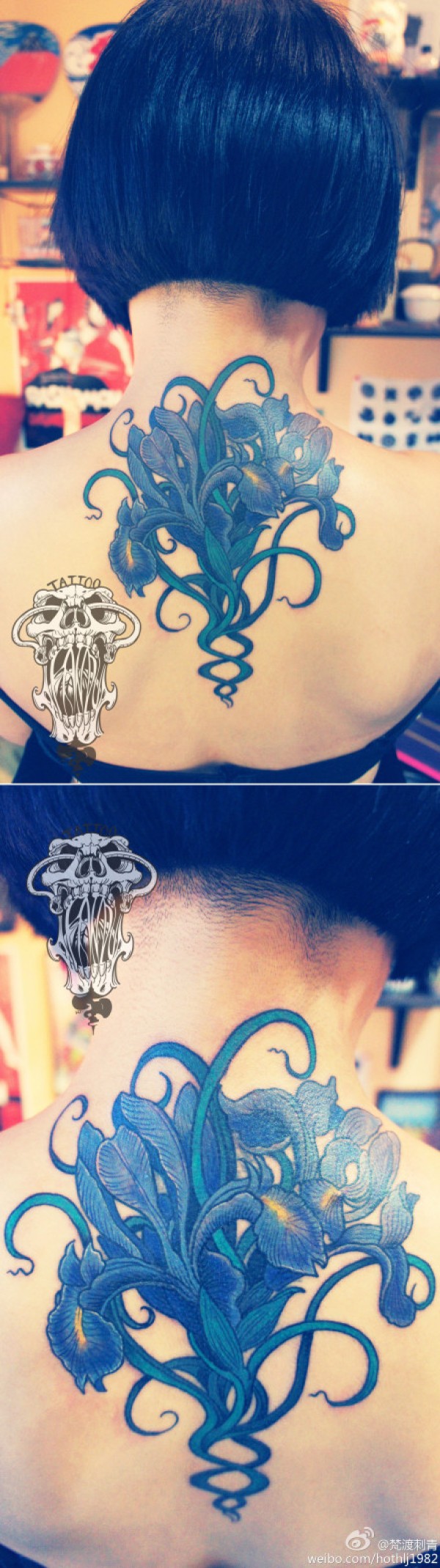 女生后背漂亮时尚的鸢尾花纹身图案_女生纹身图案大全_纹身图吧