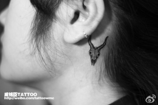 女生耳部一款小巧经典的羊骨纹身图案_女生纹身图案大全_纹身图吧