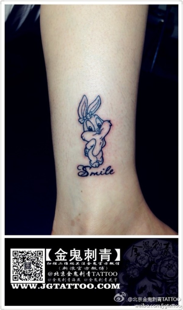 女生腿部可爱潮流的小兔子纹身图案_女生纹身图案大全_纹身图吧