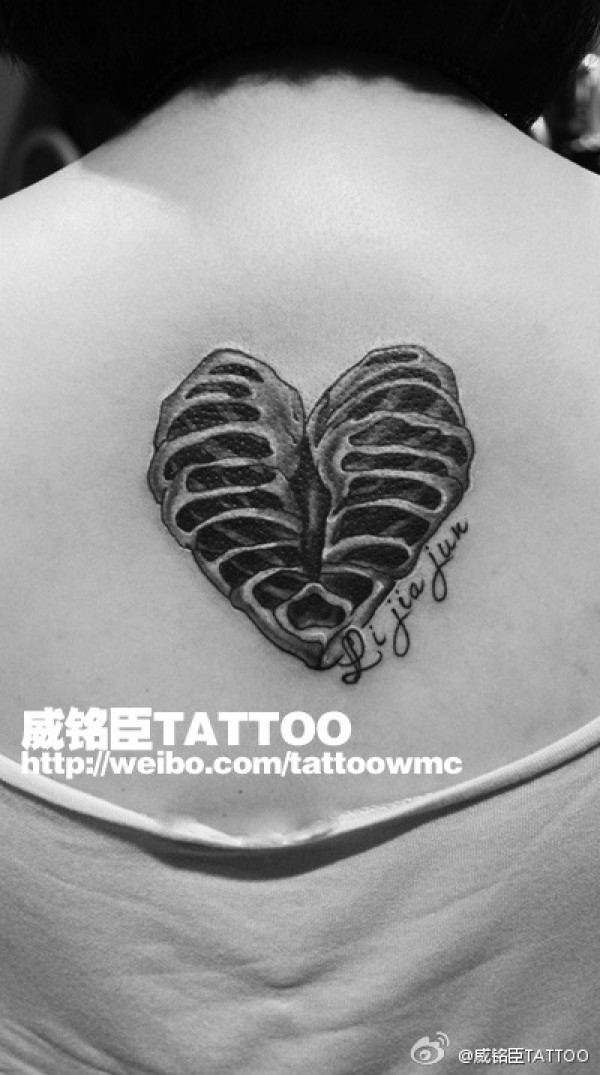 女生后背时尚潮流的骨架爱心纹身图案_女生纹身图案大全_纹身图吧