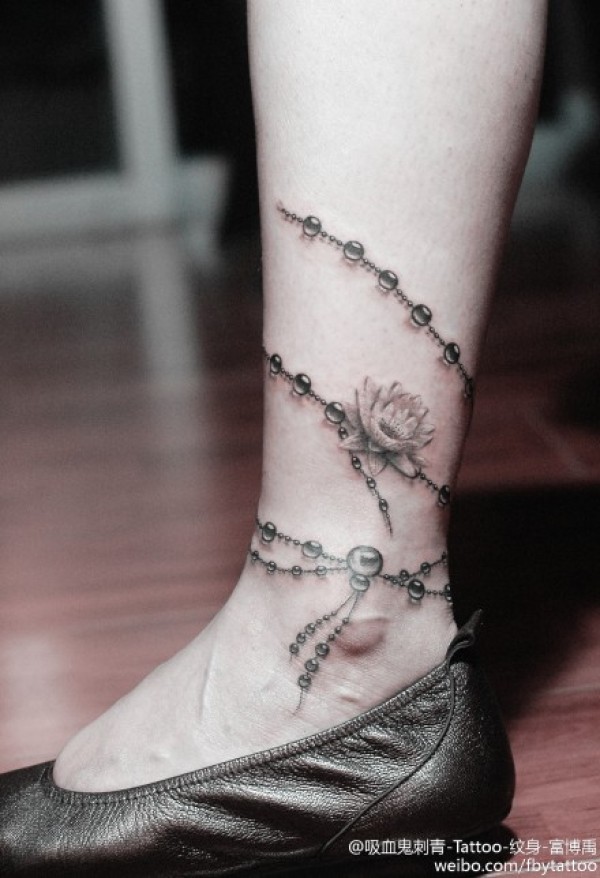 女生腿部精美潮流的脚链纹身图案_女生纹身图案大全_纹身图吧