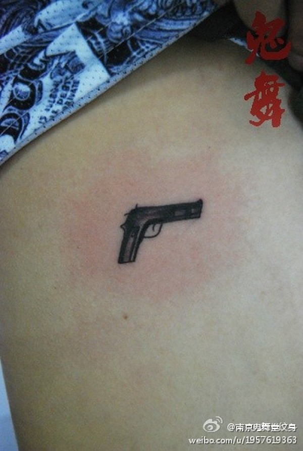 女生腿部一款小手枪纹身图案_女生纹身图案大全_纹身图吧