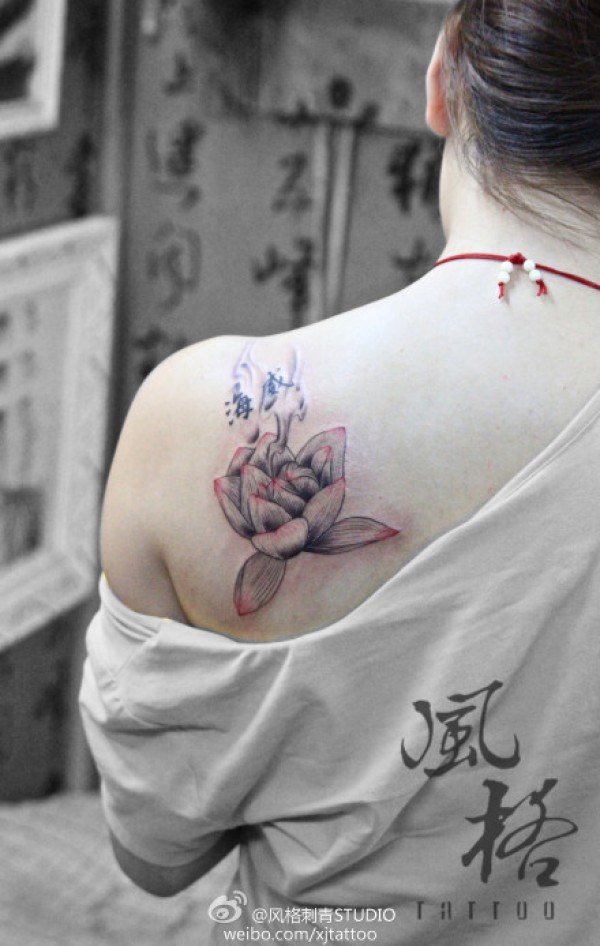 女生肩背清雅潮流的莲花纹身图案_女生纹身图案大全_纹身图吧
