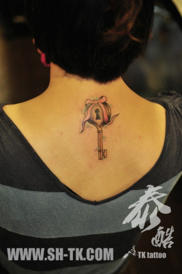 女生后颈潮流小巧的钥匙纹身图案_女生纹身图案大全_纹身图吧