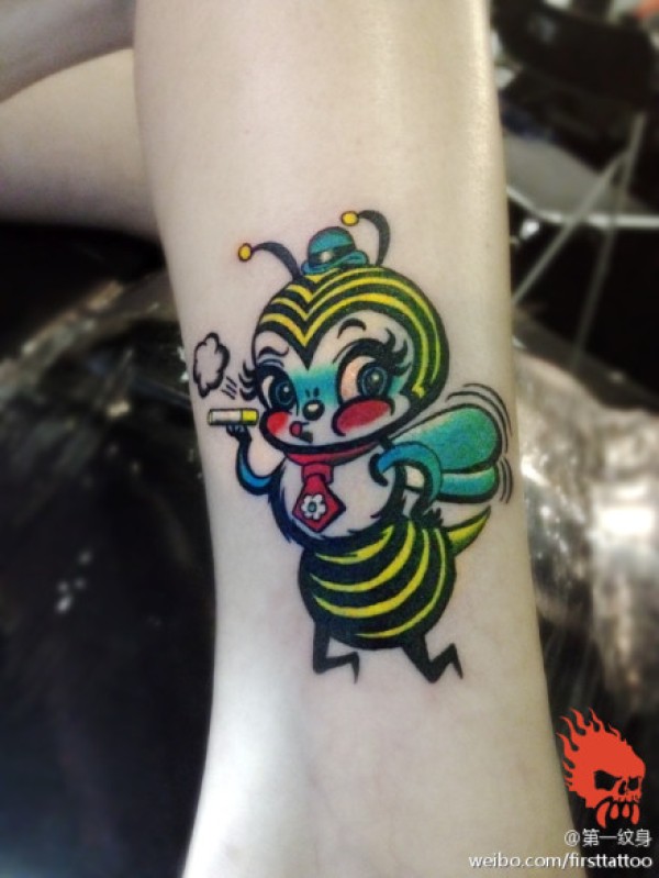 女生腿部抽烟的小蜜蜂纹身图案_女生纹身图案大全_纹身图吧