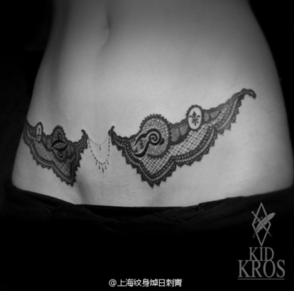 美女腹部潮流唯美的蕾丝纹身图案_女生纹身图案大全_纹身图吧