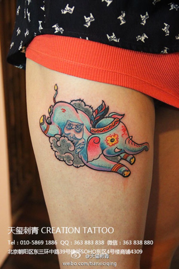 女生腿部可爱流行的小象纹身图案_女生纹身图案大全_纹身图吧