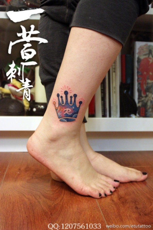 女生腿部时尚经典的星空皇冠纹身图案_女生纹身图案大全_纹身图吧