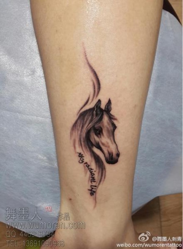 女生腿部潮流唯美的马纹身图案_女生纹身图案大全_纹身图吧