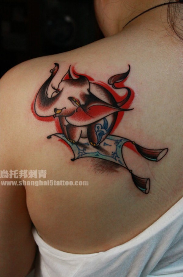 女生肩背潮流可爱的大象纹身图案_女生纹身图案大全_纹身图吧