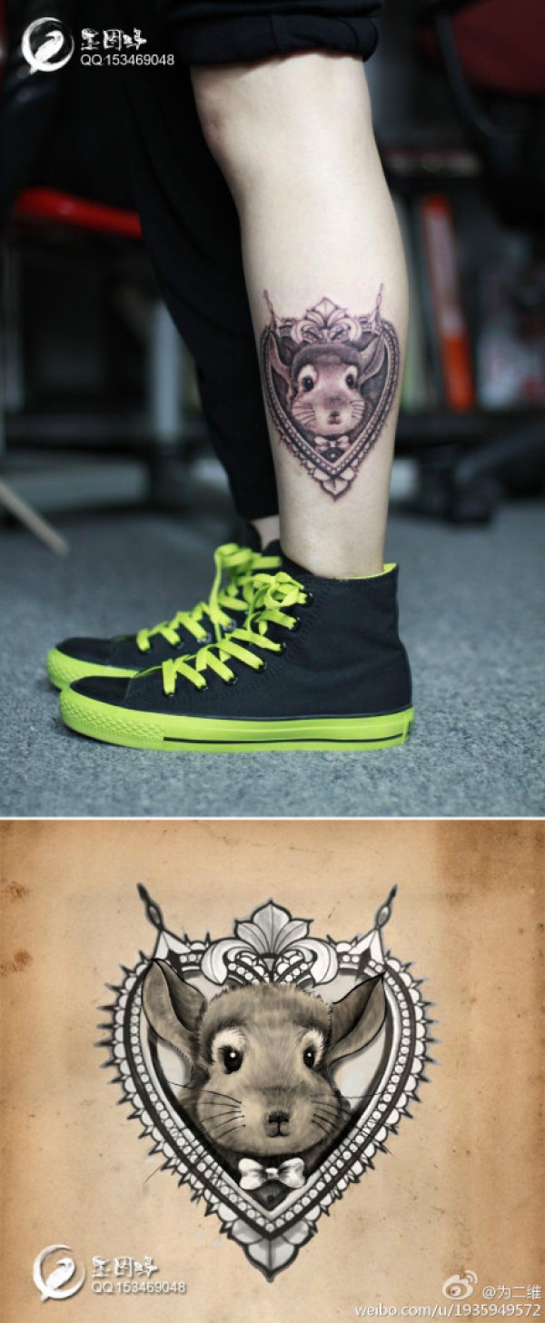 女生腿部很可爱的小老鼠纹身图案_女生纹身图案大全_纹身图吧