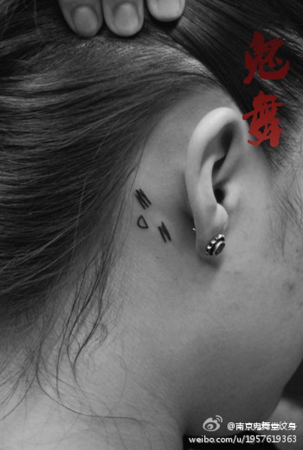 女生耳部一款可爱的表情纹身图案_女生纹身图案大全_纹身图吧