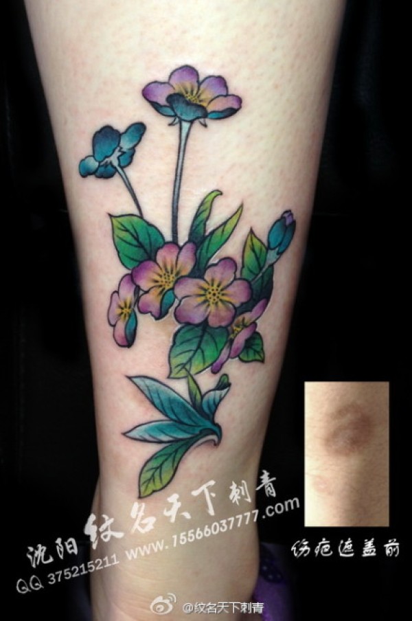 女生腿部漂亮唯美的花卉纹身图案_女生纹身图案大全_纹身图吧