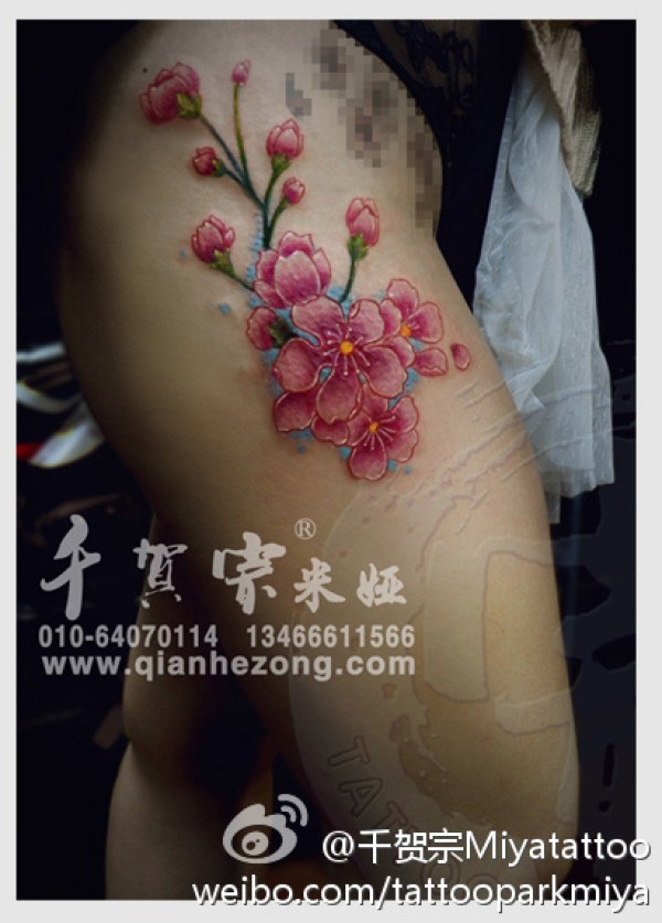 女生腿部漂亮时尚的桃花纹身图案_女生纹身图案大全_纹身图吧