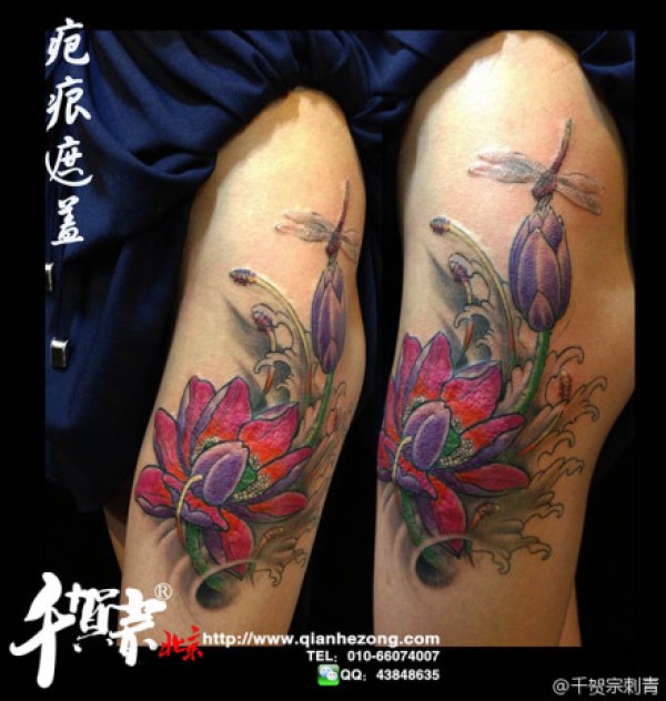 女生腿部漂亮唯美的传统莲花纹身图案_女生纹身图案大全_纹身图吧