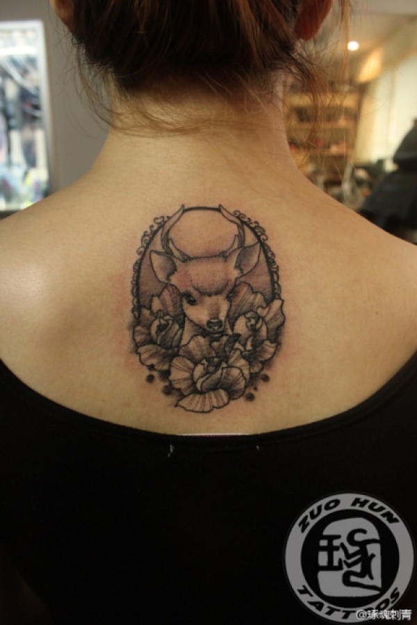 女生后背可爱的一款小鹿纹身图案_女生纹身图案大全_纹身图吧