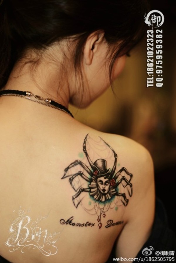 女生肩背超酷的蜘蛛纹身图案_女生纹身图案大全_纹身图吧