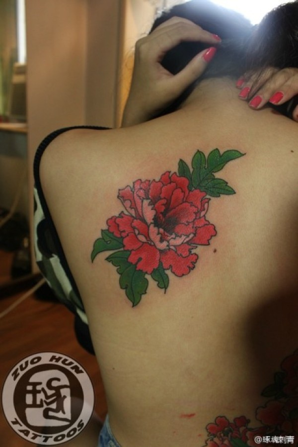 女生后背时尚唯美的牡丹纹身图案_女生纹身图案大全_纹身图吧