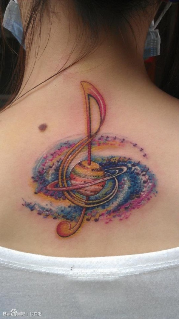 女生后颈部精美时尚的星空音符纹身图案_女生纹身图案大全_纹身图吧