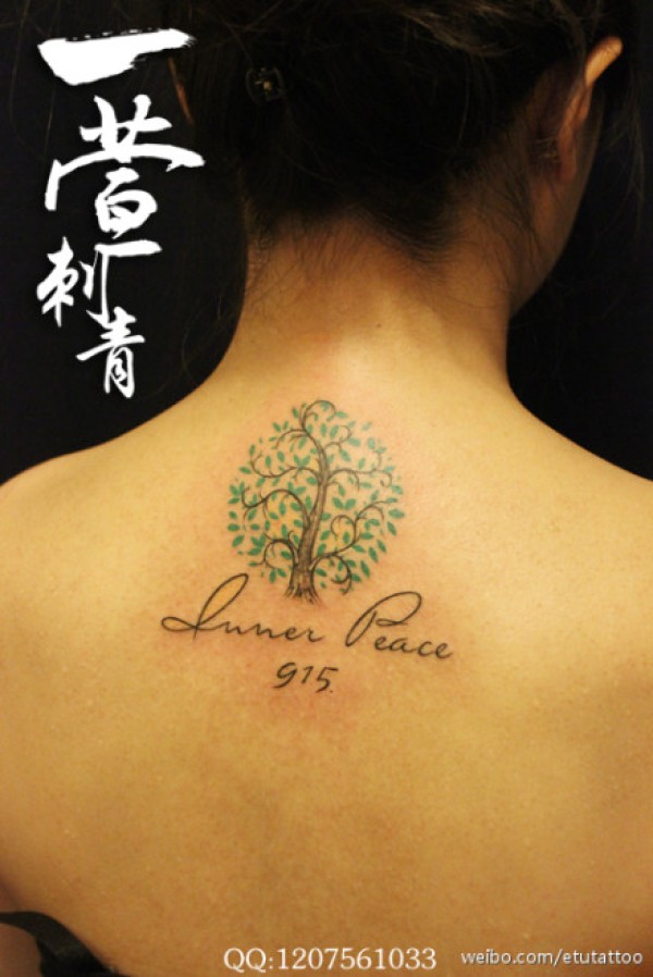 女生后颈部时尚潮流的小树纹身图案_女生纹身图案大全_纹身图吧
