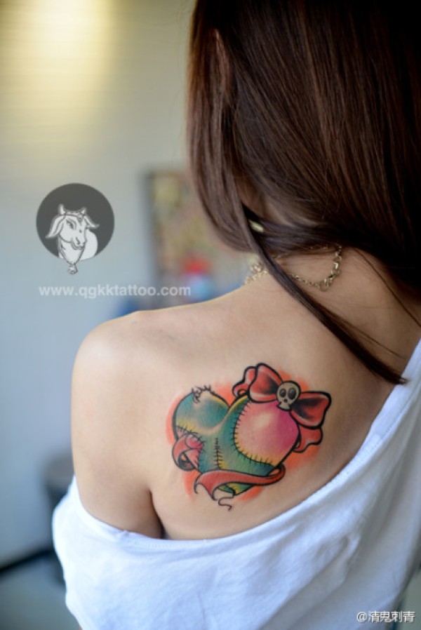 女生肩背潮流漂亮的爱心纹身图案_女生纹身图案大全_纹身图吧