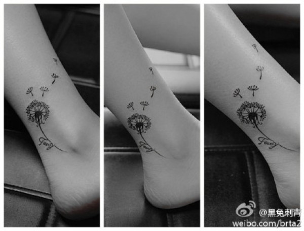 女生脚踝处时尚潮流的蒲公英纹身图案_女生纹身图案大全_纹身图吧