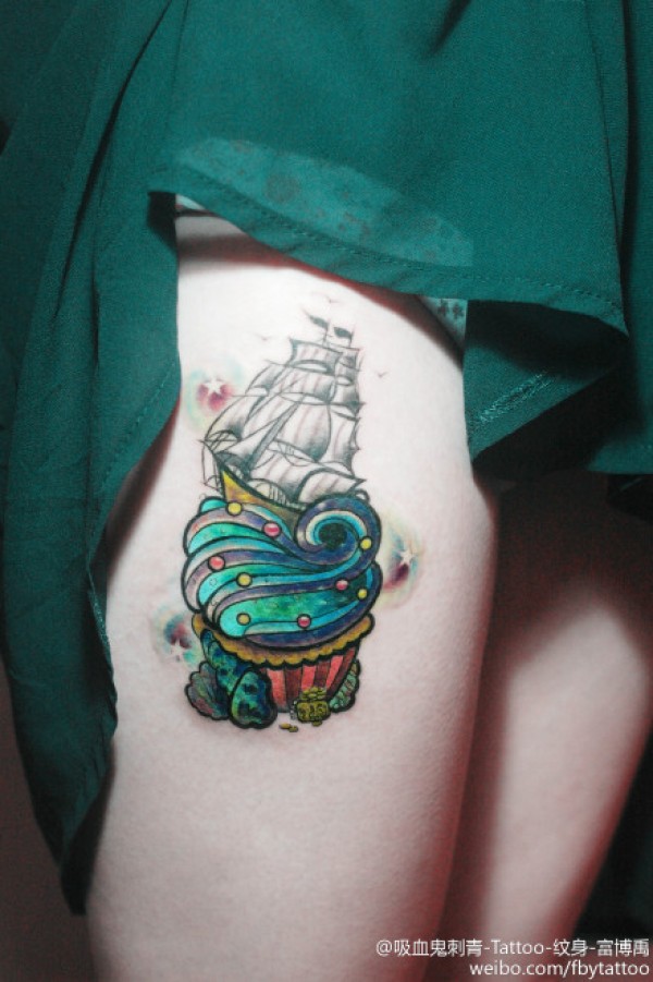 女生腿部经典时尚的冰激凌纹身图案_女生纹身图案大全_纹身图吧