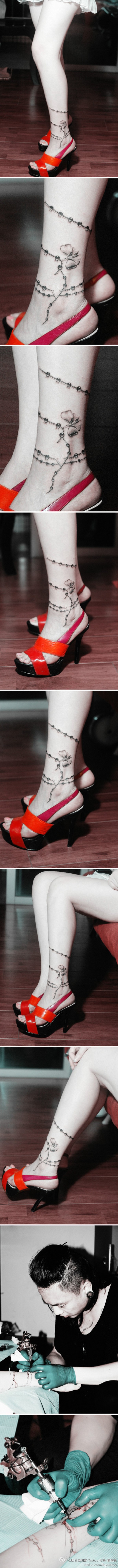 女生腿部潮流唯美的脚链纹身图案_女生纹身图案大全_纹身图吧