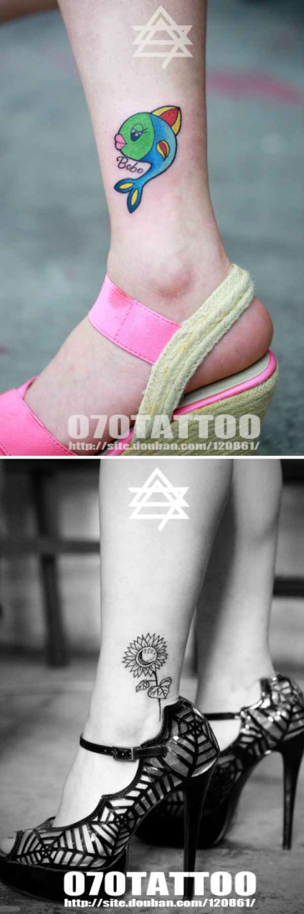 女生腿部时尚流行的小鱼与蒲公英纹身图案_女生纹身图案大全_纹身图吧