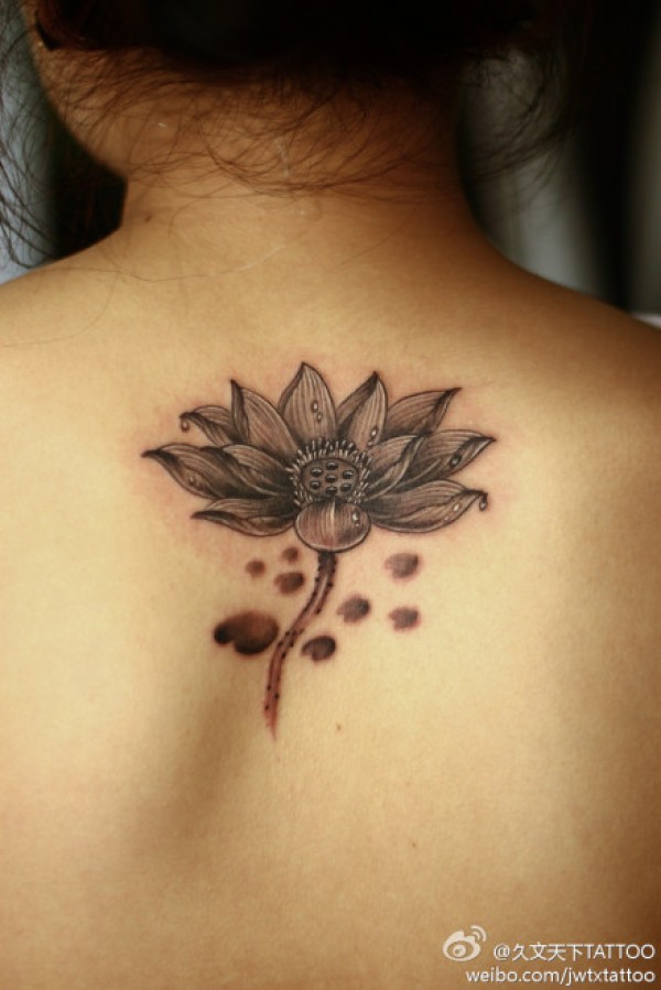女生后背时尚唯美的黑灰莲花纹身图案_女生纹身图案大全_纹身图吧