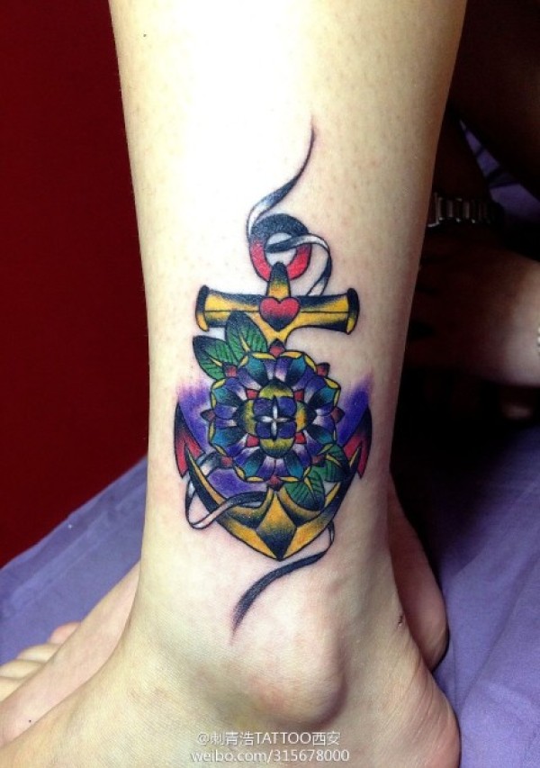 女生腿部潮流唯美的船锚纹身图案_女生纹身图案大全_纹身图吧